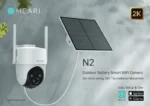 The Meari N2 3MP Outdoor Smart PTZ WiFi Camera is a solar-powered surveillance solution designed for reliable outdoor monitoring. Featuring a 3MP CMOS sensor, wide-angle lens, PIR motion detection, and two-way audio, it delivers high-quality video and smart security features. With IP65 weather resistance and dual power options, it ensures uninterrupted performance in any environment.