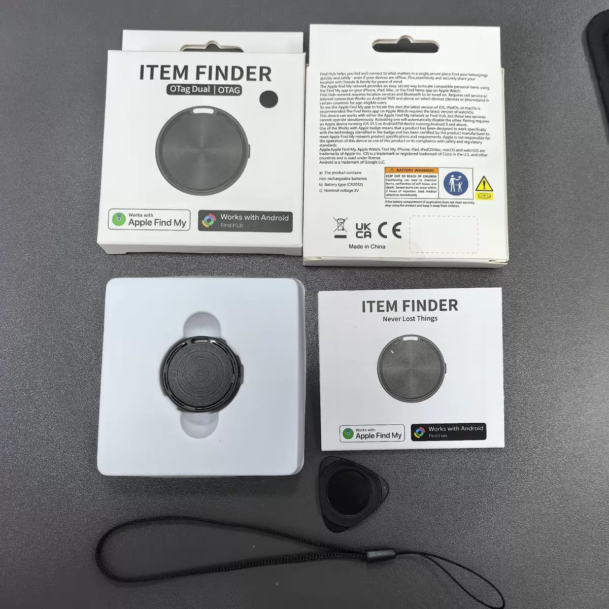 - Dual compatibility with Android (Google Find My) and iOS (Apple Find My)